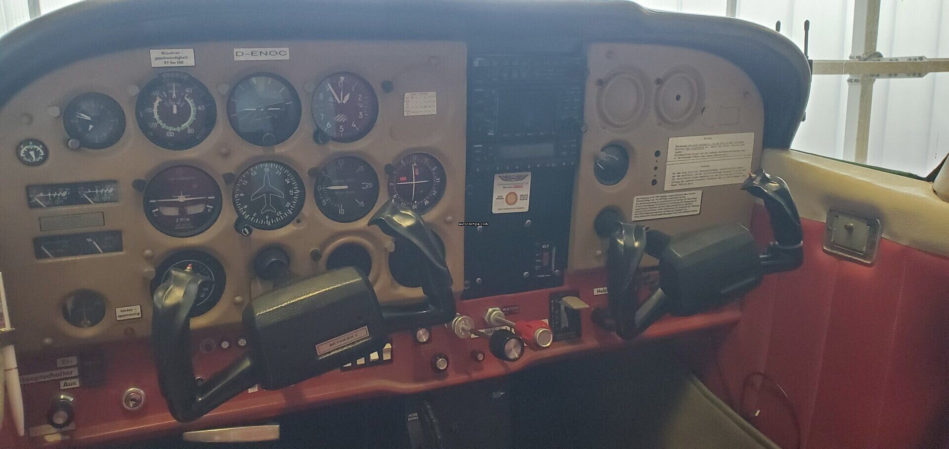 | Description | | Type: | Monomoteur | | Marque: | Cessna | | Modèle: | F-172 Skyhawk N | | Millésime: | 1979 | | Immatriculation: | D-ENOC | | Emplacement: | Allemagne, EDTG | | Heures totales cellule (TTAF): | 9350 h | | Prix: | € 110.000 | | UE VAT payée: | non |