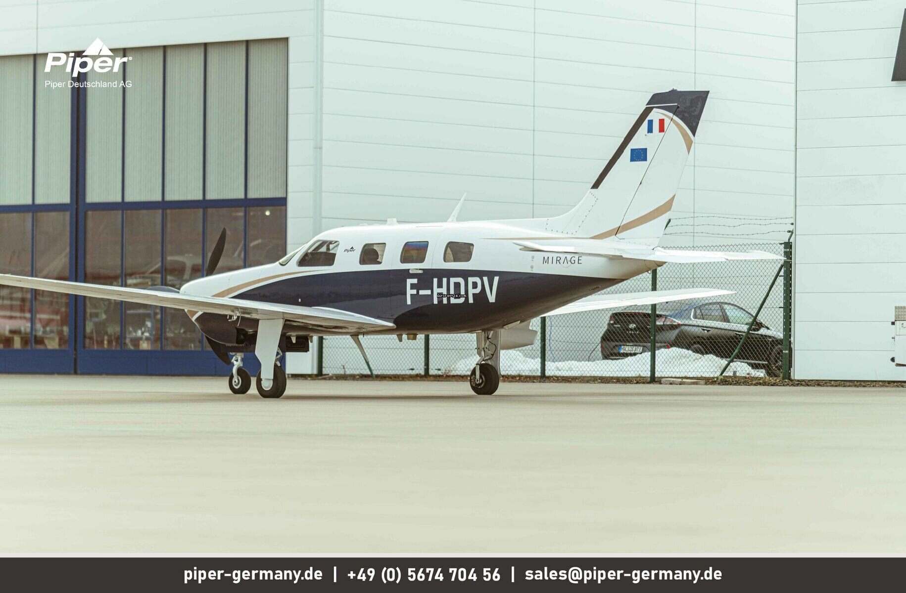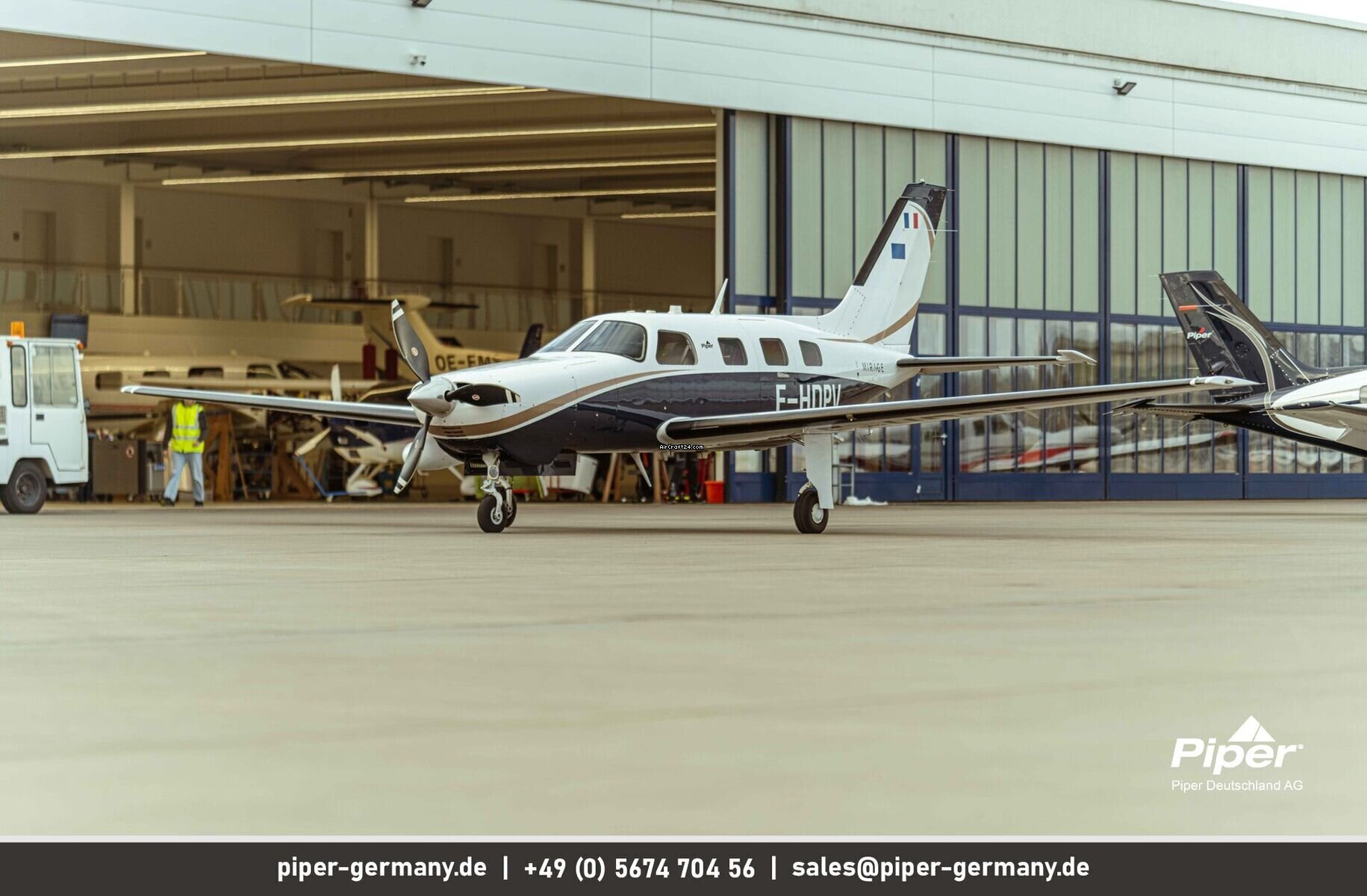 | Description | | Type: | Monomoteur | | Marque: | Piper | | Modèle: | PA-46-350P Mirage | | Millésime: | 2014 | | Immatriculation: | F-HDPV | | Numéro de série: | 4636624 | | Attributs: | Epreuve IFR Équipé IFR Toujours sous hangar | | Visite annuelle: | 8/2025 | | Emplacement: | France, Lille, LFQQ | | Heures totales cellule (TTAF): | 998 h | | Prix: | US$ 1.010.310 (~ € 876.625) | | Net-price: | € 736.659 US$ 849.000 | | UE VAT payée: | oui | | Nombre de passagers: | 6 | | Atterrissages: | 975 |