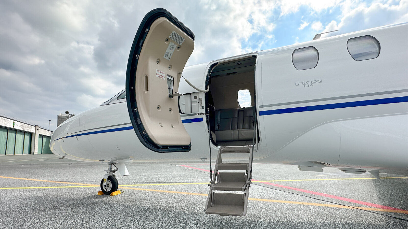 | Description | | Type: | Jet | | Marque: | Cessna | | Modèle: | Citation Jet 4 | | Millésime: | 2013 | | Immatriculation: | D-CWIT | | Numéro de série: | 525C-0124 | | Emplacement: | Allemagne | | Heures totales cellule (TTAF): | 4650 h | | Prix: | US$ 6.250.000 (~ € 5.319.602) | | Nombre de passagers: | 9 | | Atterrissages: | 4100 |