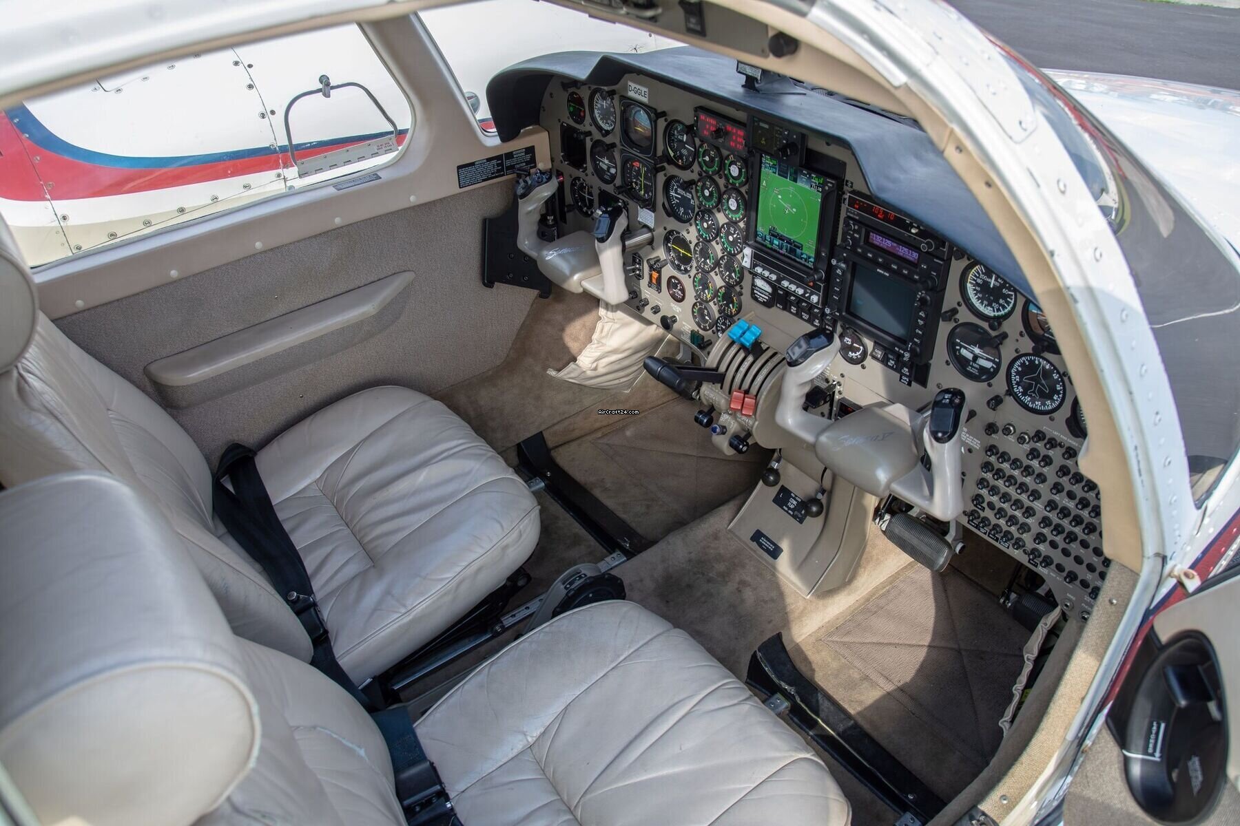 Inside, the cabin is designed for the high-end traveler, featuring a classic Bright Beige interior in a spacious club-seating configuration. Passengers can travel in total comfort regardless of the outside temperature thanks to the rare luxury of factory Air Conditioning, while the integrated entertainment center and individual reading lights ensure every journey is as relaxing as it is productive. For the pilot, this aircraft is a highly capable all-weather platform, fully FIKI certified and with supplemental oxygen. The flight deck is a masterclass in modern avionics, headlined by the Garmin GTN 750 and supported by a King KFC 150 Autopilot with GPSS Roll Steering, offering a turnkey solution for those who refuse to compromise on safety or luxury.