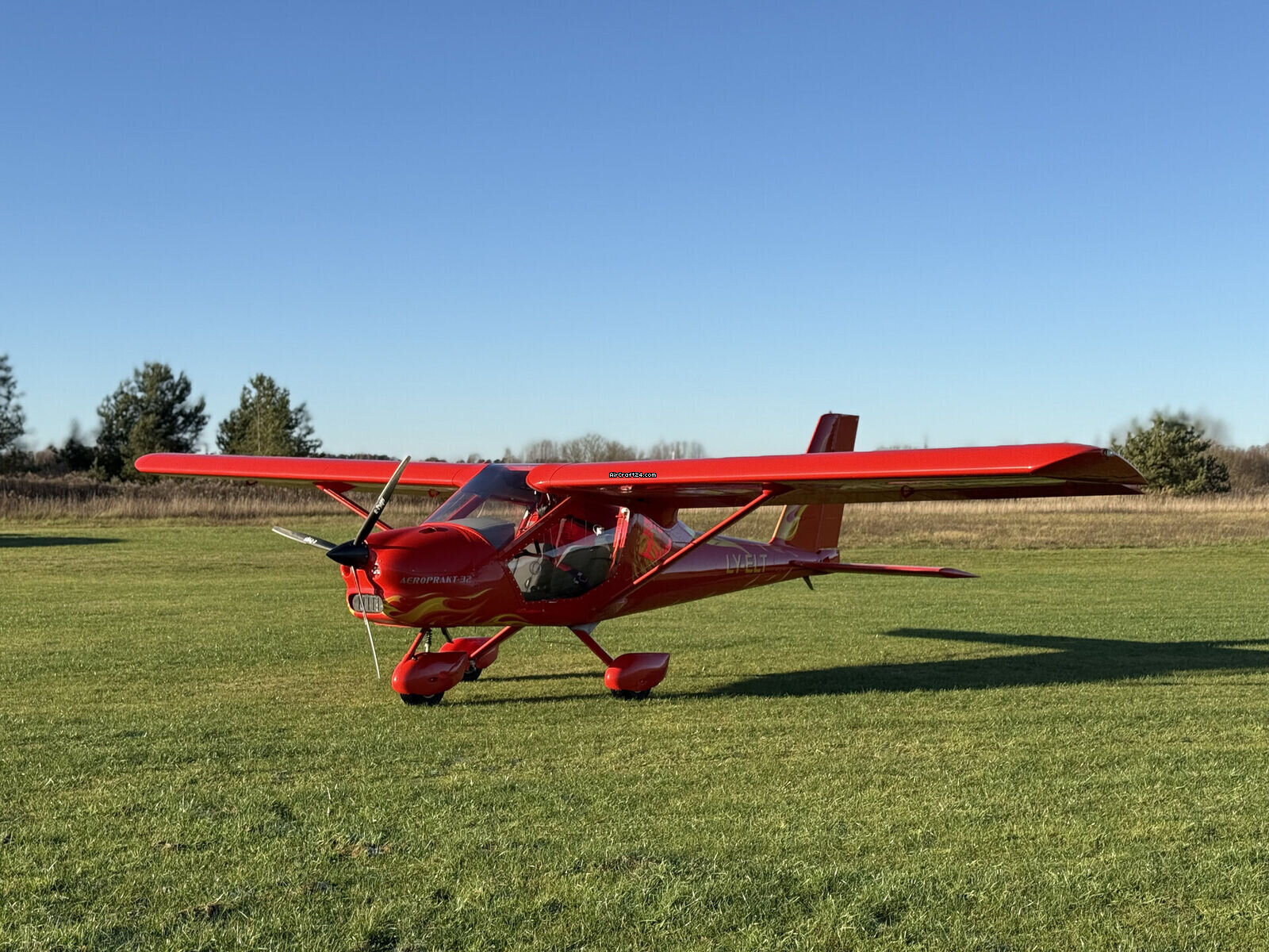 | Description | | Type: | Monomoteur | | Type spécial: | Ultraléger | | Marque: | Aeroprakt Ltd | | Modèle: | A32 | | Millésime: | 2021 | | Immatriculation: | LY-ELT | | Attributs: | Toujours sous hangar | | Visite annuelle: | 4/2025 | | Emplacement: | Lettonie | | Heures totales cellule (TTAF): | 110 h | | Prix: | € 110.000 | | UE VAT payée: | non | | Nombre de passagers: | 2 |
