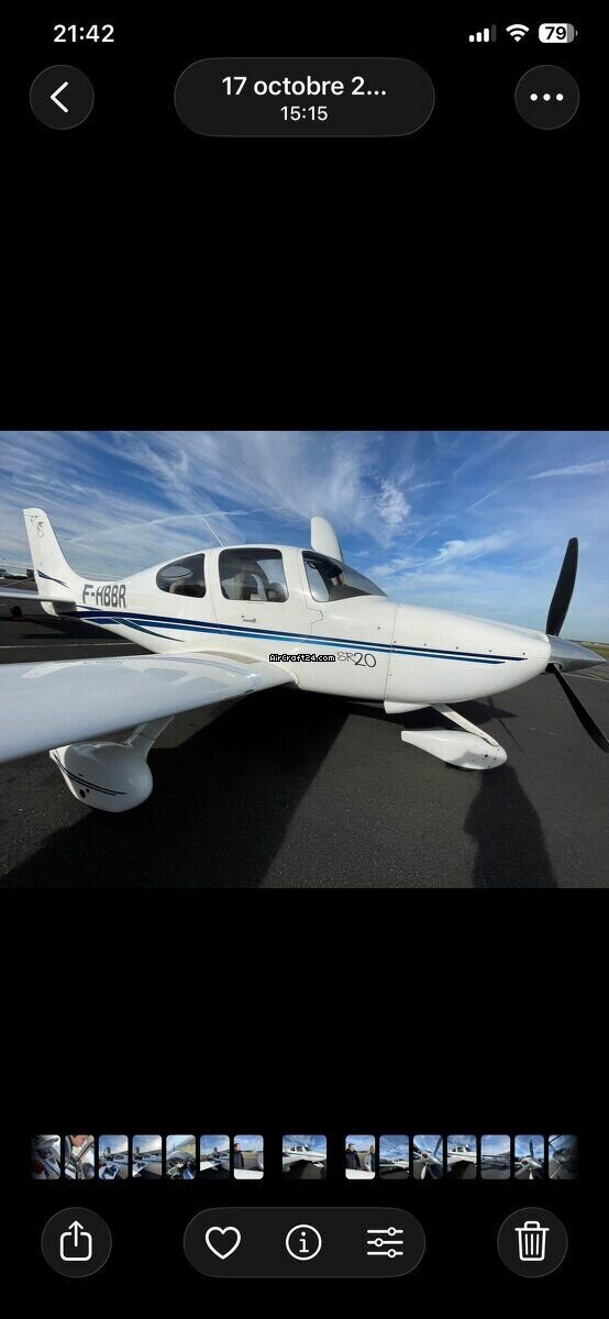 | Description | | Type: | Monomoteur | | Marque: | Cirrus | | Modèle: | SR20-G2 | | Millésime: | 2009 | | Immatriculation: | F-HBBR | | Numéro de série: | 1344 | | Attributs: | Toujours sous hangar | | Visite annuelle: | 2/2025 | | Emplacement: | France, TOUSSUS LE NOBLE, LFPN | | Heures totales cellule (TTAF): | 3386 h | | Prix: | € 145.000 | | UE VAT payée: | oui | | Détails |