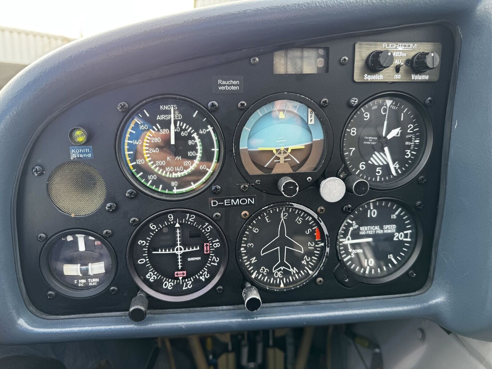 | Description | | Type: | Monomoteur | | Marque: | Diamond | | Modèle: | DV20 | | Millésime: | 1993 | | Immatriculation: | DEMON | | Numéro de série: | 20012 | | Attributs: | Toujours sous hangar | | Visite annuelle: | 8/2025 | | Emplacement: | Allemagne, Eggenfelden, EDME | | Heures totales cellule (TTAF): | 5700 h | | Prix: | € 129.000 | | UE VAT payée: | oui | | VAT stated sep.: | oui (19%) | | Nombre de passagers: | 1 | | Atterrissages: | 11000 |