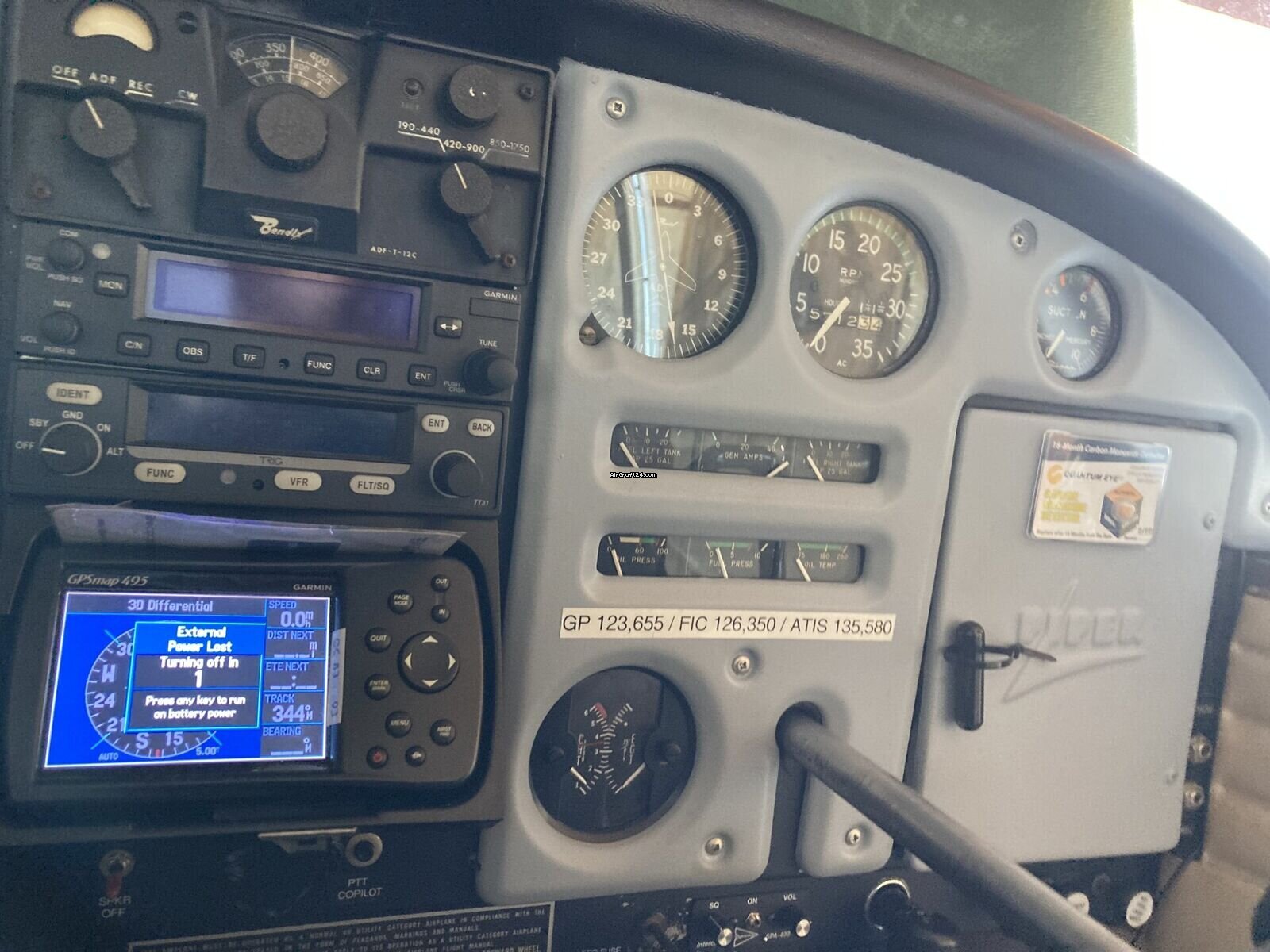 Description | Type: | Monomoteur | Marque: | Piper | Modèle: | Cherokee 140 Cruiser | Millésime: | 1965 | Immatriculation: | HBOYH | Numéro de série: | 28-20959 | Attributs: | Toujours sous hangar Histoire de dommages | Visite annuelle: | 9/2025 | Emplacement: | Suisse, Prangins, LSGP | Heures totales cellule (TTAF): | 5741 h | Prix: | CHF 40.000 (~ € 42.813) | UE VAT payée: | non | Détails |